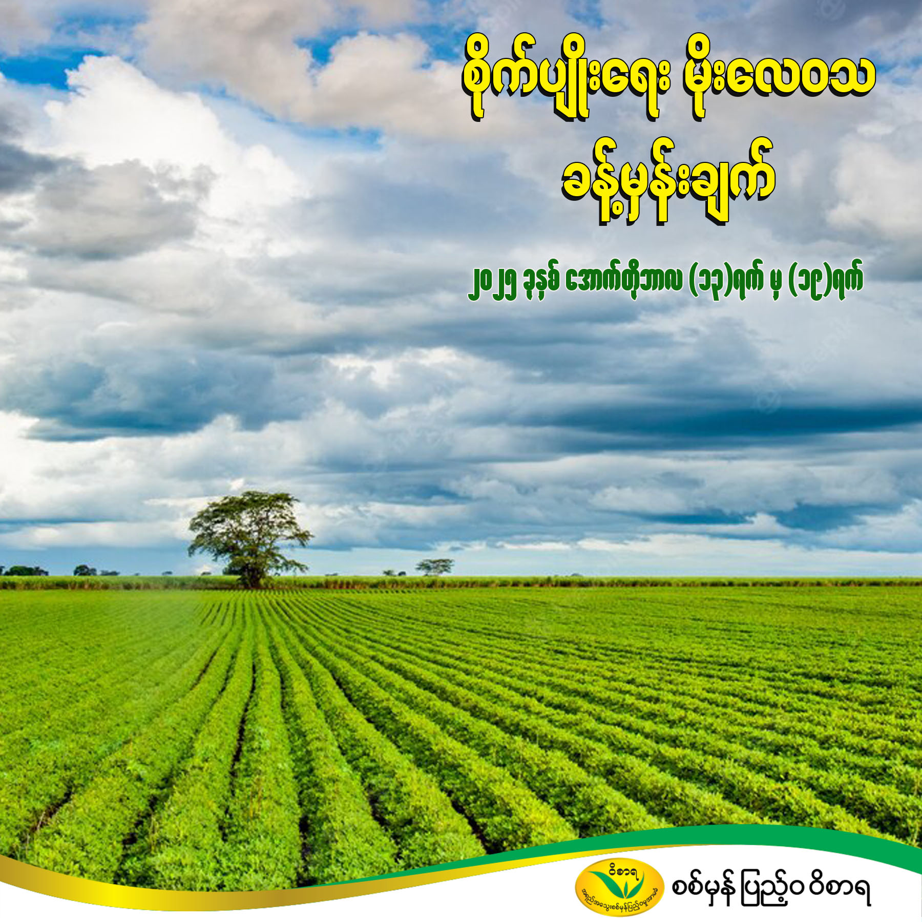 "စိုက်ပျိုးရေး မိုးလေဝသ ခန့်မှန်းချက်" ၂၀၂၅ခုနှစ် အောက်တိုဘာလ (၁၃)ရက် မှ (၁၉)ရက်