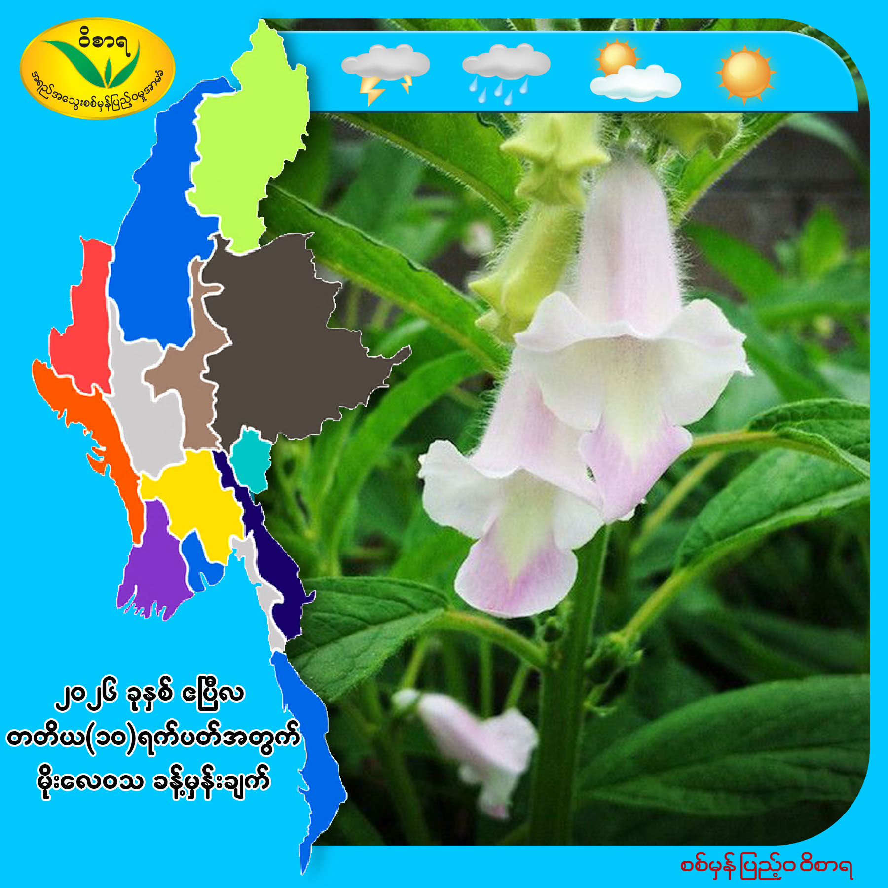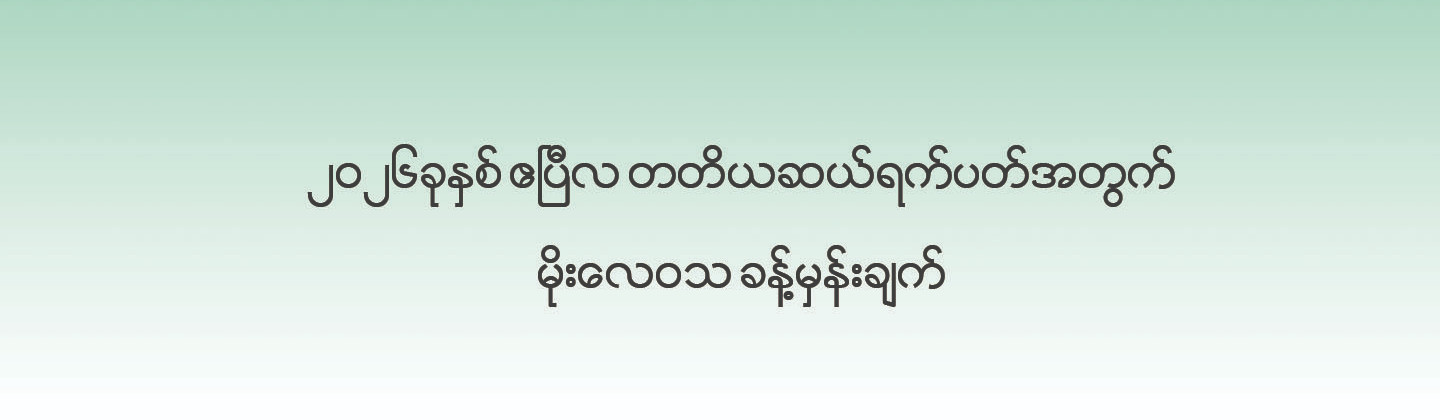"၂၀၂၆ ခုနှစ်၊ ဧပြီလ တတိယ(၁၀)ရက်ပတ်အတွက် မိုးလေဝသနှင့်ဇလဗေဒခန့်မှန်းချက်"