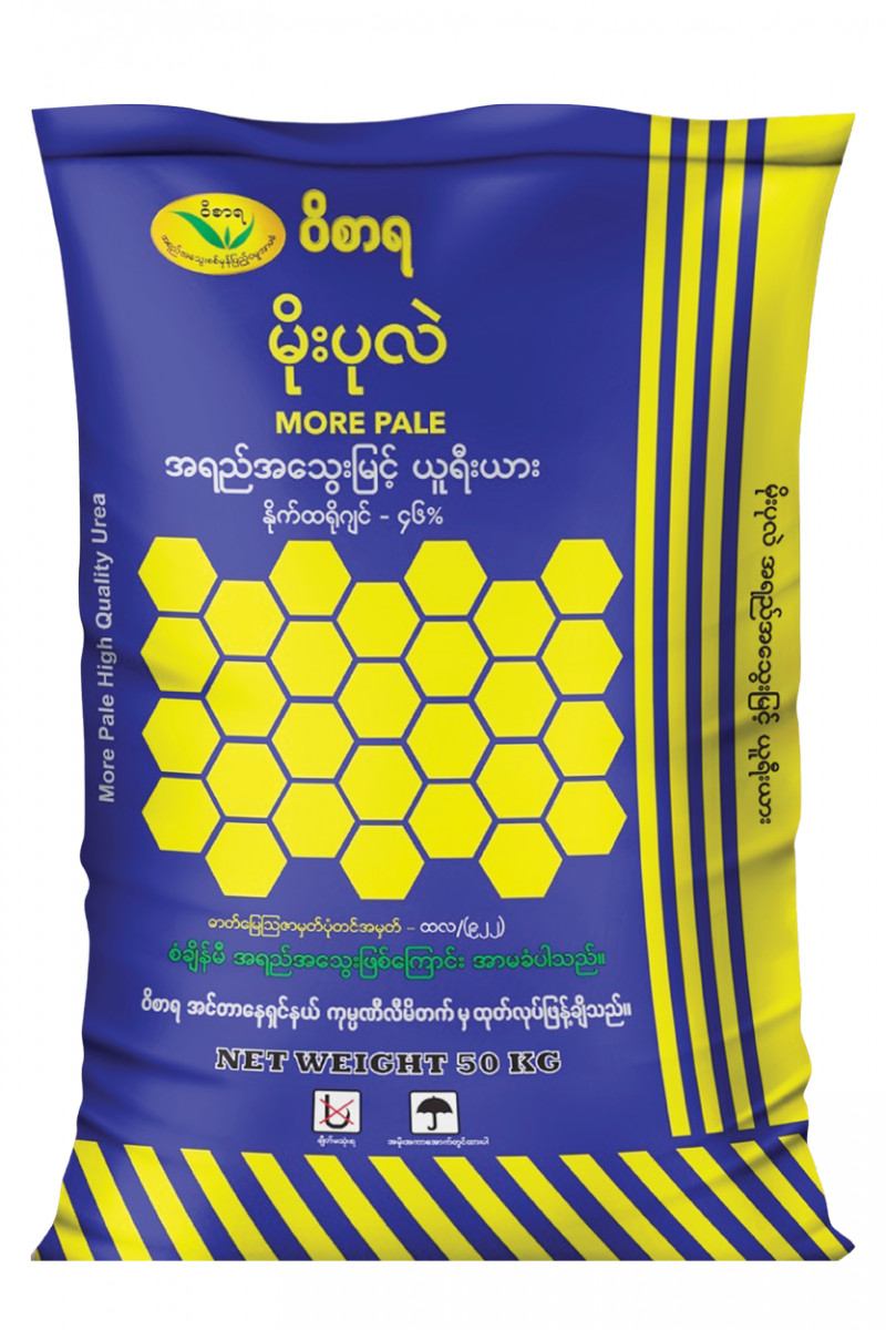 | အာနိသင်ဖော်ပြချက် | -အရည်အသွေးအထူးအာမခံဖြင့် ထုတ်လုပ်ထားသော ယူရီးယားမြေဩဇာ အမျိုးအစားဖြစ်သည်။ -စိုက်ခင်းအတွင်းထည့်သွင်းအသုံးပြုရန်လွယ်ကူသော အလုံးအခဲအရွယ်အစားပုံစံဖြင့် ထုပ်လုပ်ထားသည်။ -စိုက်ခင်းအတွင်းကြဲပက်ရာတွင် ပြန့်နှံ့မှုကောင်းသည်။ -အပင်အားလုံး၏အစာချက်လုပ်မှုလုပ်ငန်းကို ဆောင်ရွက်ပေးသော (Chlorophyll) ကလိုရိုဖီးလ်ဖြစ်တည်မှုအတွက် နိုင်ထရိုဂျင်သည် အဓိက မိတ်ဘက်ဖြစ်သည်။ -အေး၍ခြောက်သွေ့ပြီး လေဝင်လေထွက်ကောင်းသောနေရာတွင် သိုလှောင်ပါ။ |